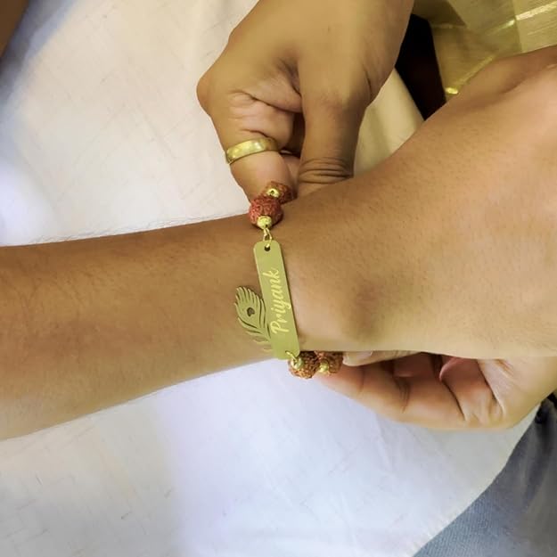 Get your brother's name personalized in a stylish and traditional Rudraksha Rakhi Bracelet.