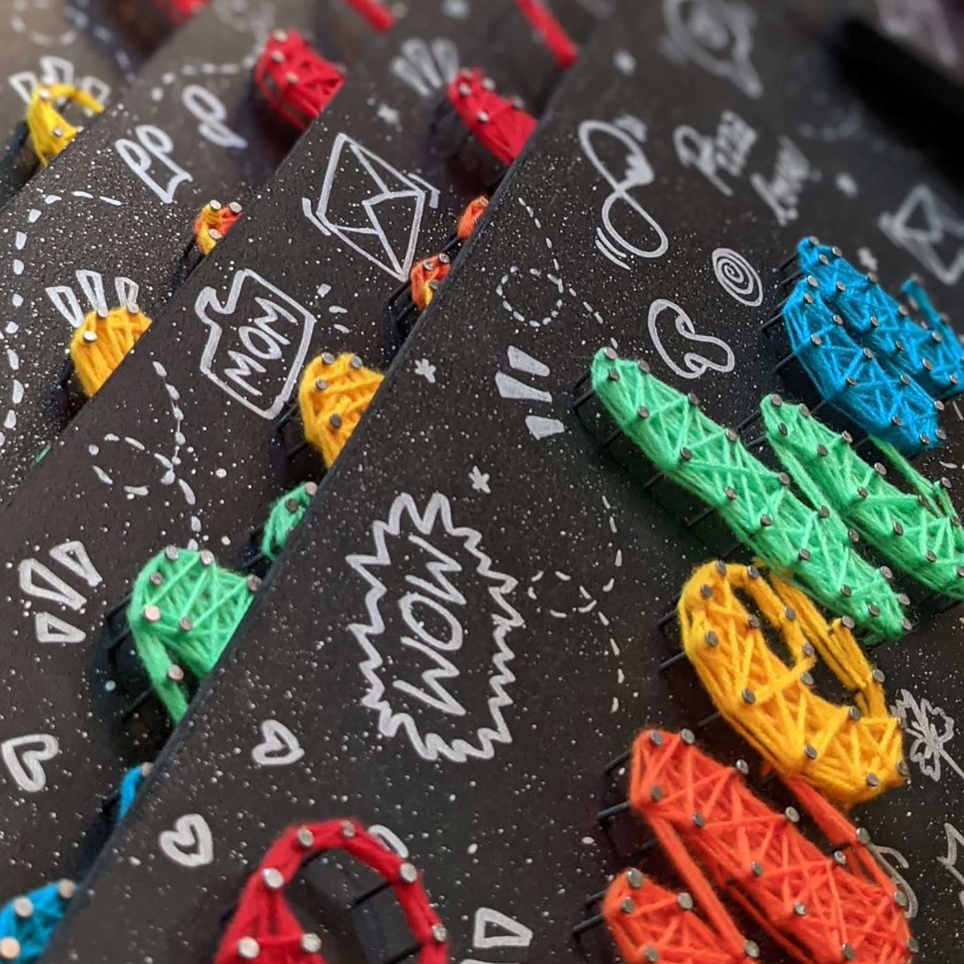 Add a splash of creativity to your space with this vibrant string art name plate.
