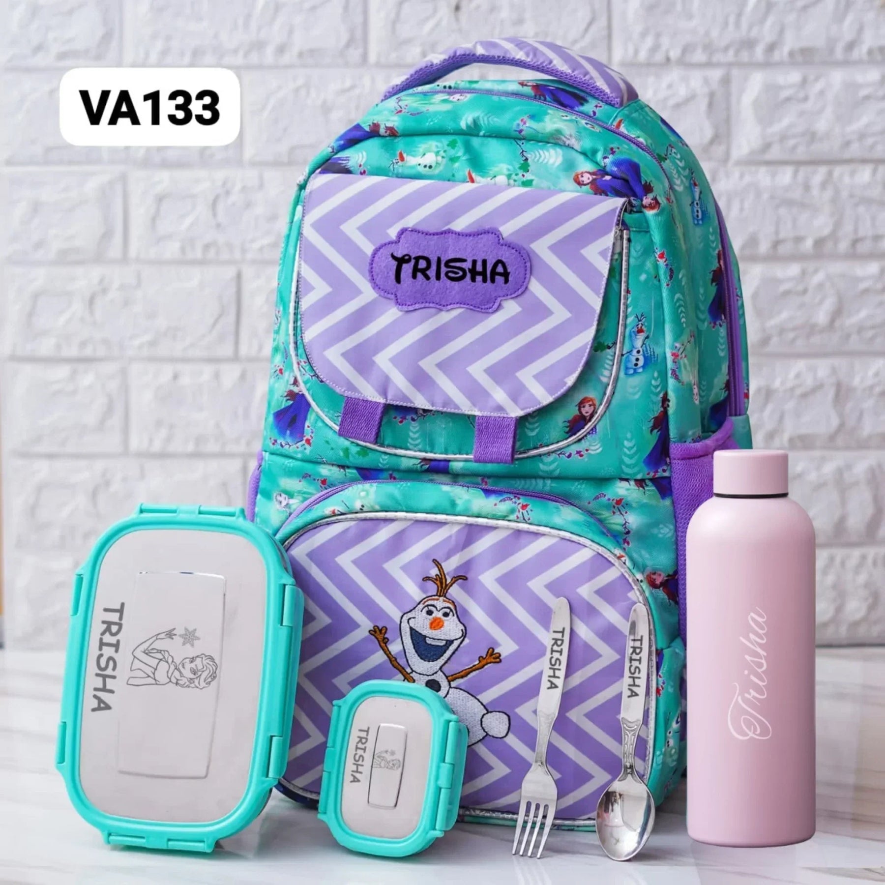 Your Gift Studio Frozen Print Kids Backpack, Tiffin, Fork, Spoon & Bottle Customised Hamper